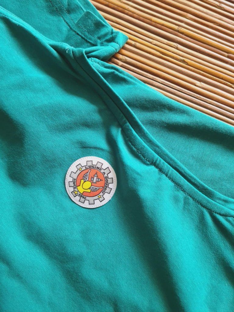Ecusson cousu au dos, sous le col